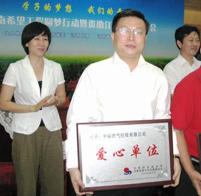 中裕燃?xì)饪毓捎邢薰緢?zhí)行董事魯肇衡先生作為愛心捐贈(zèng)企業(yè)的唯一代表在會(huì)上發(fā)言。魯總在發(fā)言中說到,中裕燃?xì)庾鳛橐患颐駹I燃?xì)膺\(yùn)營商,一直熱心于慈善事業(yè),并把“常懷感恩之心,不忘回饋社會(huì)”作為自己的座右銘,時(shí)刻牢記在心。從2002年至今,已通過希望工程辦公室、河南省慈善總會(huì)、河南省紅十字會(huì)等機(jī)構(gòu)向各類弱勢群體捐贈(zèng)了價(jià)值近200萬元的款物,其中包括向5.12汶川大地震中受災(zāi)的學(xué)生捐助50萬元。魯總表示,中裕將以此次“圓夢行動(dòng)”為契機(jī),進(jìn)一步加大對貧困地區(qū)和貧困學(xué)生的幫扶支教力度。同時(shí)呼吁更多的企業(yè)和社會(huì)團(tuán)體參與到“圓夢行動(dòng)”中來,幫助更多的貧困學(xué)子夢想成真。