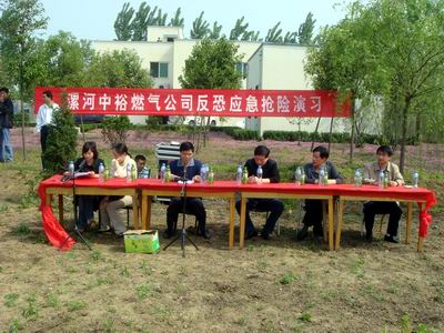 "漯河公司訊 為確保奧運會舉辦期間的燃氣供應安全,4月30日,漯河中裕公司按照該市反恐辦、市建委的指示,結合燃氣行業(yè)特性和自身實際情況,于其天然氣門站成功舉辦了反恐實戰(zhàn)演練,有效提高了自己在突發(fā)事件下的應變處置能力,贏得了市建委、反恐辦領導的充分肯定。