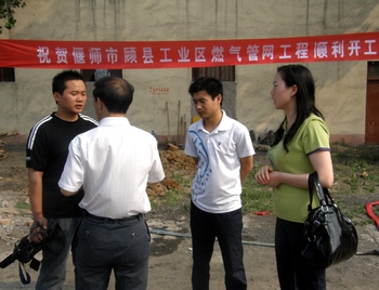 偃師公司訊 5月8日上午9時,“偃師市顧縣工業區燃氣管網工程”隨著震耳欲聾的鞭炮聲拉開了帷幕,顧縣工業區領導、偃師公司全體班子成員、監理單位、施工單位等相關人員參加了開工儀式。偃師電視臺記者到現場進行了采訪,并對該工程總體情況錄制專題節目進行了報道。