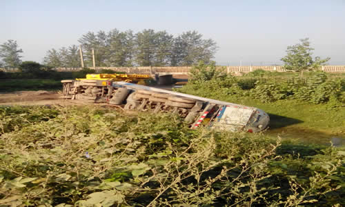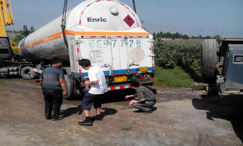 早上6:50左右,郭總帶領人員趕到事故現場。為了防止發生次生災害對過往行人造成傷害,郭總立即安排王建華、徐巖對出事地點道路兩側拉起安全警示帶,禁止車輛和行人通行,經現場查看和了解:事故車輛(E9772掛液化天然氣槽車),總重50噸,裝約20噸壓力為0.1Mpa、溫度為-162℃液化天然氣,自山西出發,目的地是廣東,途徑漯河時,由于107國道漯河段正在大修、無法通行,而事故車輛屬于易燃易爆特種車輛又無法在高速公路上行駛,司機茹先生就改道進入小路行駛,但在駛入京廣鐵路涵洞處時由于路窄坡陡,造成槽車側翻事故。經過現場檢查,未發現天然氣泄漏現象。