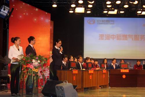 期間,競(jìng)賽活動(dòng)分各代表隊(duì)風(fēng)采展示、個(gè)人必答題、小組必答題、搶答題、加賽題、觀眾互動(dòng)題六個(gè)環(huán)節(jié)次第進(jìn)行,內(nèi)容涉及《河南省城市燃?xì)庑袠I(yè)服務(wù)規(guī)范》、《燃?xì)夥?wù)導(dǎo)則》、《城鎮(zhèn)燃?xì)夤芾項(xiàng)l例》三個(gè)標(biāo)準(zhǔn)文件及《漯河公司對(duì)外服務(wù)承諾》、燃?xì)饣A(chǔ)知識(shí)等多個(gè)方面,主要考查參賽隊(duì)員們對(duì)服務(wù)規(guī)范、燃?xì)夤芾矸ㄒ?guī)和燃?xì)饣A(chǔ)知識(shí)的掌握情況。