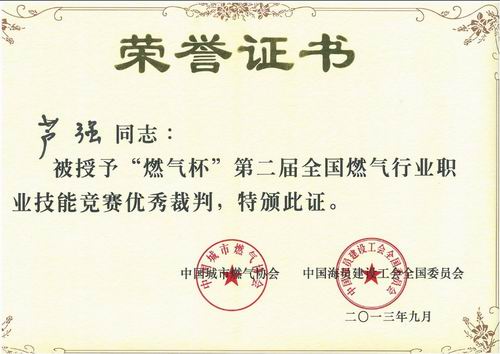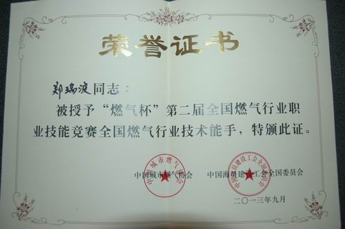 大賽結(jié)束后,中國城市燃?xì)鈪f(xié)會(huì)下發(fā)表彰文件,組委會(huì)舉行了隆重的頒獎(jiǎng)儀式。至此,中裕燃?xì)獾膸酌夹g(shù)精英以良好的成績完成了在全國燃?xì)庑袠I(yè)技術(shù)競賽中的“首秀”。