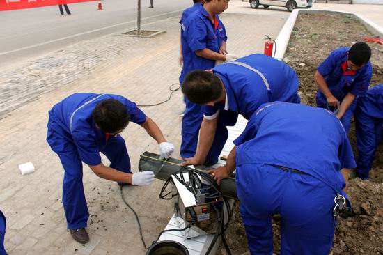 演習一開始,總指揮根據用戶報警情況,指示公司啟動一級搶修應急預案。接到搶險指令,公司搶險搶修組、技術保障組、現場警戒組、后勤保障組陸續出發,閃警燈鳴警笛在10分鐘內依次進入搶修現場,搶險指揮車也同時到位。搶險人員迅速按分工各就各位,搬卸警示牌、滅火器,關閉前端閥門,警戒監護……50分鐘后,包括破路、封管、檢測、清理現場在內的搶險工作全部完成,指揮部下達了恢復供氣的命令。