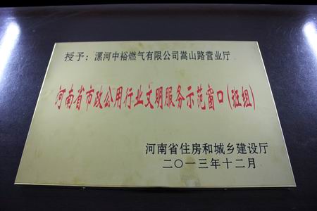 漯河公司訊 3月28日,在濟(jì)源召開的“全省城市建設(shè)管理工作座談會(huì)”上,河南省住房和城鄉(xiāng)建設(shè)廳對(duì)2013年全省市政公用行業(yè)“講文明、樹新風(fēng)、規(guī)范服務(wù)促發(fā)展”競(jìng)賽活動(dòng)進(jìn)行了總結(jié)、表彰,漯河公司榮獲“河南省市政公用行業(yè)文明服務(wù)明星企業(yè)”榮譽(yù)稱號(hào),漯河公司嵩山路營(yíng)業(yè)廳榮獲“河南省市政公用行業(yè)文明服務(wù)示范窗口(班組)”榮譽(yù)稱號(hào)。