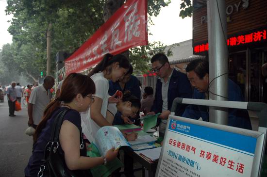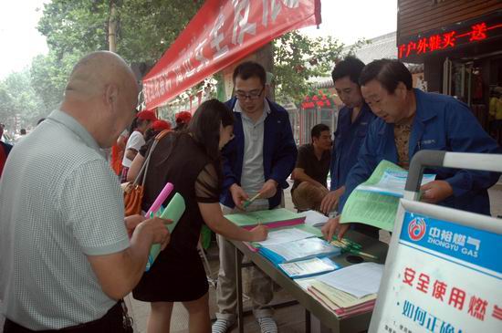 由于當天系全市“安全生產月”集中宣傳活動,濟源公司安全宣傳小分隊不到七點鐘就早早來到指定地點,為設置咨詢臺、宣傳版面、懸掛橫幅“搶占”有利位置。在本次宣傳活動中,濟源公司還印制并向市民發(fā)放了《河南省城鎮(zhèn)燃氣管理條例》等新版宣傳資料。