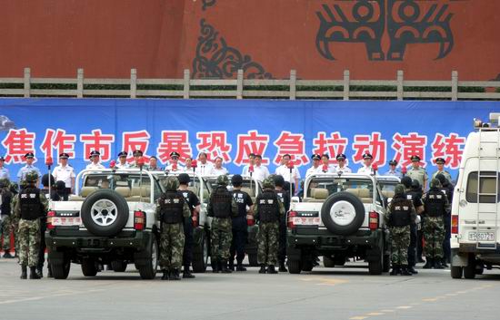焦作公司訊 5月29日下午,焦作市反暴恐應急拉動演練在焦作影視城廣場舉行,焦作公司作為反暴恐應急隊伍之一派出了20名專業搶險人員,4輛燃氣搶險車,與公安、武警、消防官兵和衛生、環保、供電等部門密切配合,參與演練。焦作市委書記孫立坤出席活動并講話,市委常委、政法委書記丁保東,副市長賈書君,焦作軍分區副司令員孫厚軍出席活動。焦作公司董事長/總經理隋耀光也受邀出席觀看了演練。