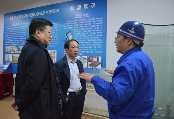 魯總一行在參觀洛陽龍海電子玻璃有限公司生產車間