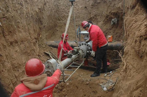 此前,濟(jì)源市次高壓燃?xì)夤芫W(wǎng)呈U型結(jié)構(gòu)運(yùn)行,一路氣源從中馬頭天然氣門站由東向西北方向輸供,另一路從東郭路天然氣門站由東向西南方向輸供,兩路次高壓管道通過西環(huán)路接通。2014年,基于濟(jì)源市新增供氣渠道——安洛線孟州至濟(jì)源天然氣支線的投運(yùn),濟(jì)源公司適時優(yōu)化管網(wǎng)結(jié)構(gòu),啟動了東二環(huán)(濟(jì)源大道至堽頭段)次高壓天然氣管道工程建設(shè),并于今年1月中旬竣工。該管道全長1.8公里,設(shè)計(jì)壓力1.6MPa,管道兩端分別與正在運(yùn)行的次高壓主管道交匯。1月15日,濟(jì)源公司順利實(shí)施了原有在運(yùn)次高壓管道的兩處帶氣開孔作業(yè),在不停氣的情況下完成了新舊管網(wǎng)對接。