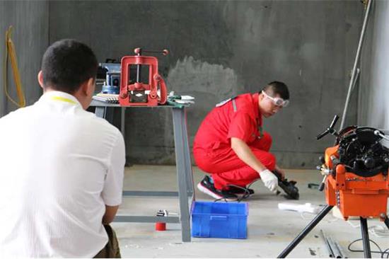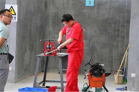 期間,來自全省17個(gè)地市的68名參賽選手分調(diào)壓工、安裝維修工2個(gè)賽項(xiàng)進(jìn)行了角逐,考核成績由理論和實(shí)踐兩部分組成。調(diào)壓工實(shí)操要求參賽選手在70分鐘的限時(shí)內(nèi)對整臺調(diào)壓器進(jìn)行檢查,并完成對主調(diào)器切斷閥的拆裝保養(yǎng)維護(hù)及組裝調(diào)試、工作原理圖繪制等操作;安裝維修工實(shí)操要求參賽選手在100分鐘的限時(shí)內(nèi)按照給定的墻面圖,設(shè)計(jì)燃?xì)夤艿腊惭b圖,提出材料表,完成管道下料組裝、壓力試驗(yàn)等操作。