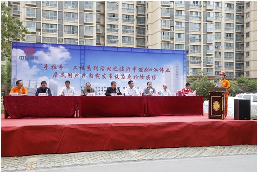 本次演練由集團(tuán)安全運(yùn)營(yíng)部、北部區(qū)域中心聯(lián)合舉辦,臨沂中能、泗洪偉業(yè)承辦,泗洪消防隊(duì)配合參演。演練以泗洪公司某燃?xì)庥脩艏抑邪l(fā)生燃?xì)獗际鹿蕿楸尘啊c艉楣局蛋嘣拕?wù)員接小區(qū)用戶事故報(bào)警后立即響應(yīng),搶險(xiǎn)人員15分鐘后趕到事發(fā)現(xiàn)場(chǎng),迅速采取了現(xiàn)場(chǎng)警戒、切斷氣源、搶救傷者、疏散群眾、監(jiān)測(cè)燃?xì)鉂舛?、消除火源等?yīng)急措施,同時(shí)向公司領(lǐng)導(dǎo)匯報(bào)了現(xiàn)場(chǎng)情況。公司領(lǐng)導(dǎo)根據(jù)現(xiàn)場(chǎng)情況迅速啟動(dòng)公司級(jí)應(yīng)急搶險(xiǎn)預(yù)案。演練過(guò)程中,對(duì)現(xiàn)場(chǎng)取證、媒體采訪、恢復(fù)供氣、事故用戶資料準(zhǔn)備、事故調(diào)查等工作也進(jìn)行了模擬。