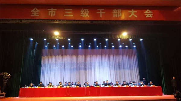 永城公司訊 近日,永城市三級干部大會在永城市影劇院隆重召開。永城市委書記孟慶勇,市委副書記、代市長李中華出席會議并作重要講話。