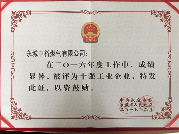 首獲“十強工業企業”榮譽