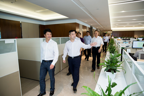 云投集團(tuán)黨委副書記、副董事長(zhǎng)兼總裁劉勇一行在中裕燃?xì)舛戮种飨跷牧恋呐阃聟⒂^中裕燃?xì)饧瘓F(tuán)本部