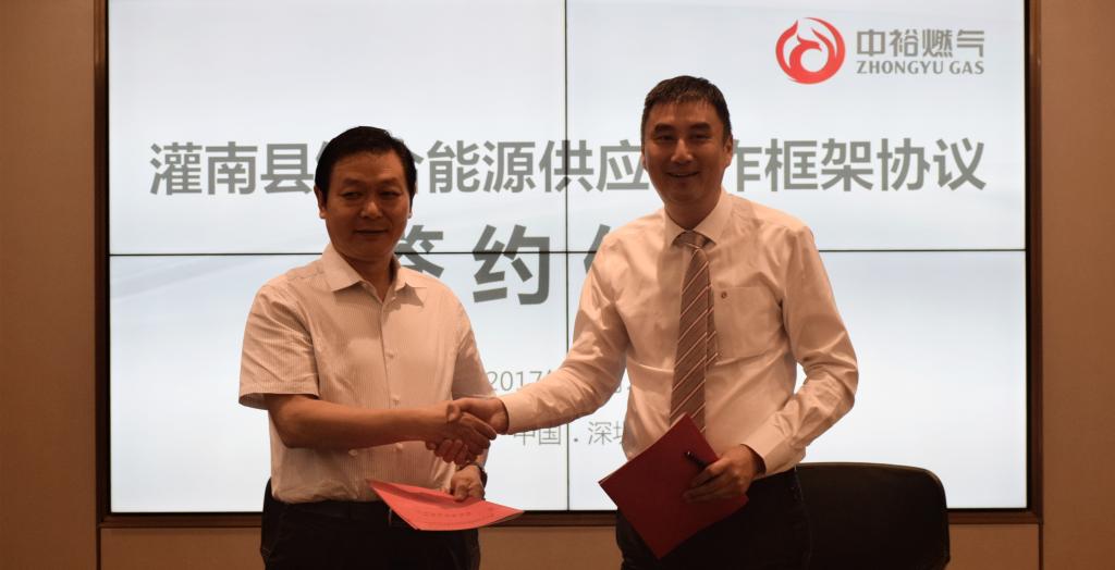 管理總部訊 11月2日,中裕燃氣與灌南縣城市建設投資發展有限公司(簡稱“灌南城投”)在深簽署《灌南縣綜合能源供應合作框架協議》。灌南縣副縣長周文生、縣住建局局長兼灌南城投董事長嵇道峰、縣住建局副局長楊軍、縣商務局副局長孫耀清、縣化工園區副書記高長禮,集團執行董事兼總裁魯肇衡,集團副總裁彭軍、盧迎九及相關領導出席簽約儀式。